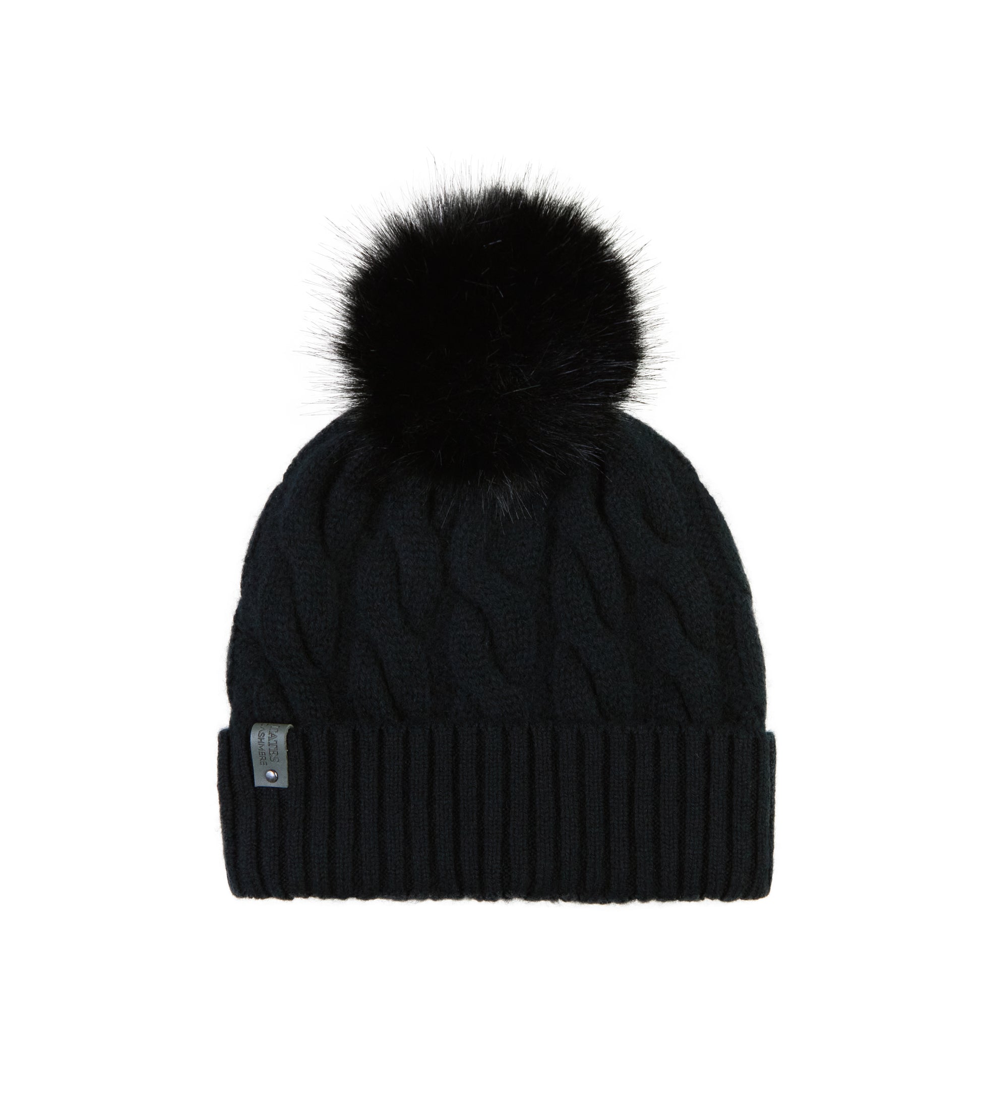 100% Cashmere Chunky Cable Pom Pom Black Hat