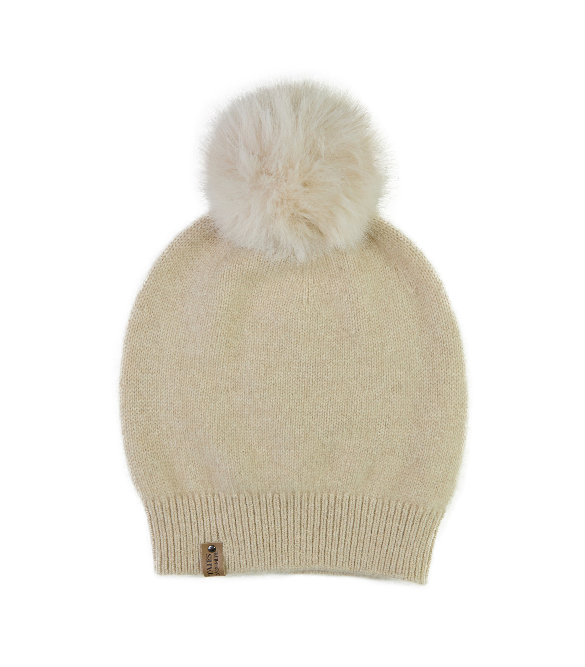 A lovely knitted minimal Pom Pom hat. Made from 100% Mongolian cashmere. Shown here in beige, comes in grey, black, camel, and taupe.
