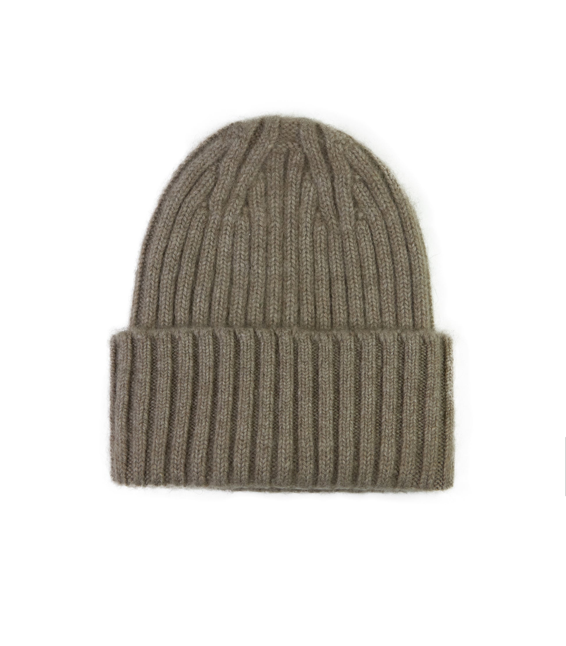 A beautifully designed chunky ribbed cashmere hat. Made from the finest Mongolian 100% cashmere. Shown here in taupe comes in teal, grey, beige, burgundy, charcoal and black.