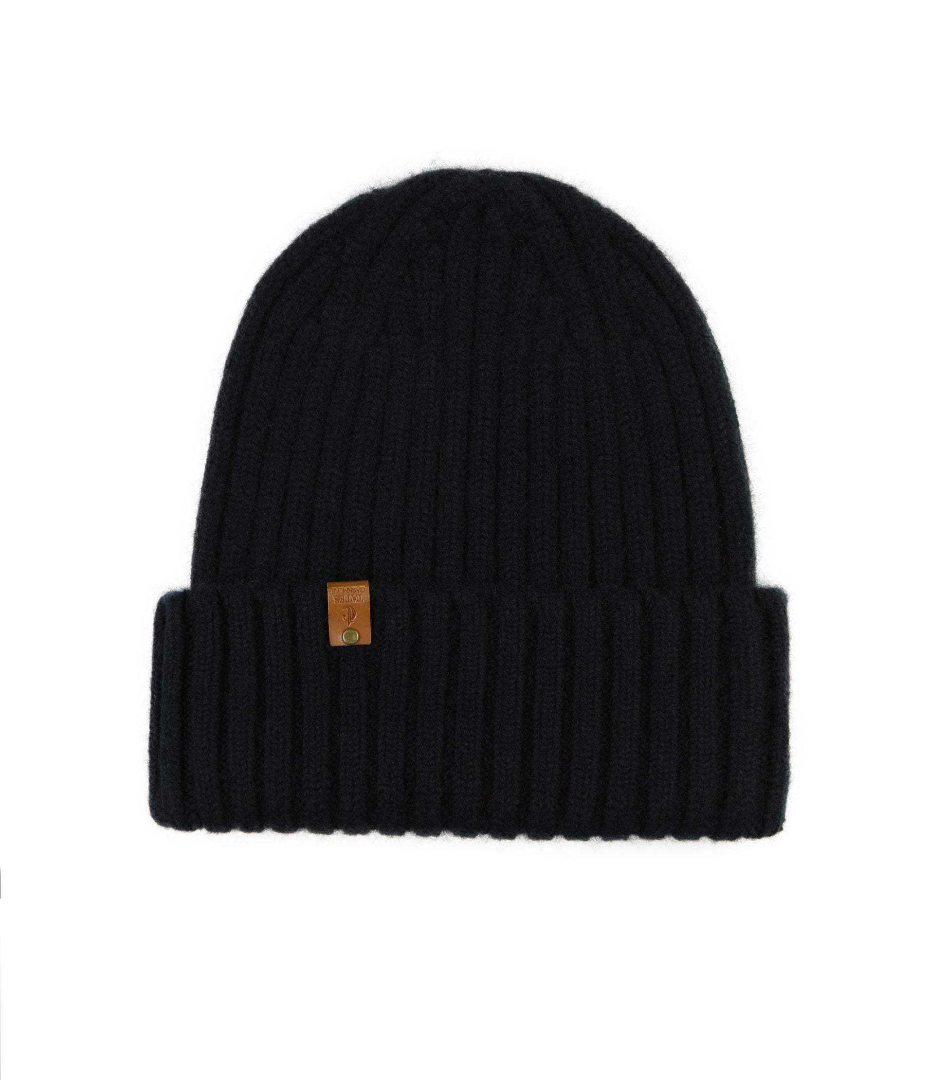 A beautifully designed chunky ribbed cashmere hat. Made from the finest Mongolian 100% cashmere. Shown here in black, comes in teal, charcoal, taupe, burgundy, beige and grey.